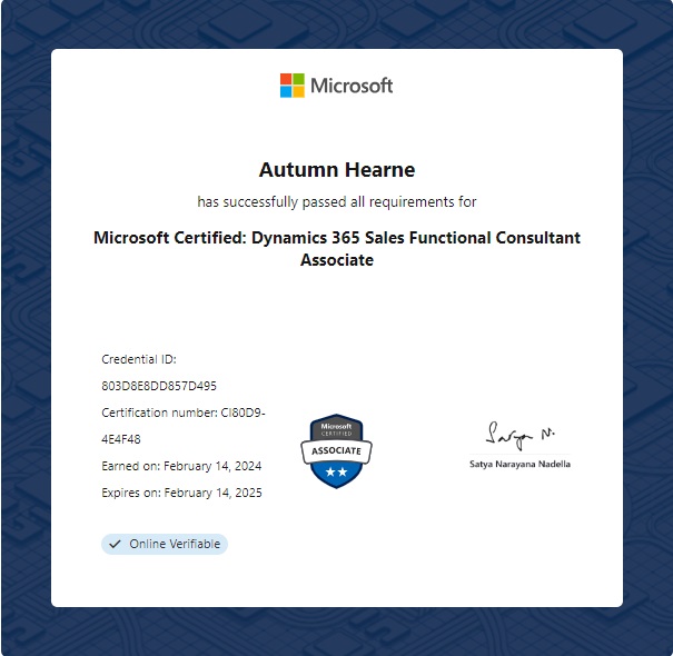 Microsoft Certified: Dynamics 365 Sales Functional Consultant Associate