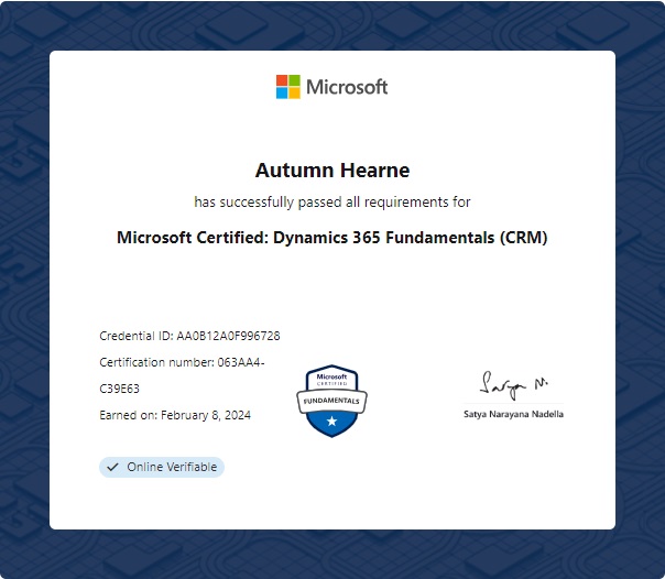 Microsoft Certified: Dynamics 365 Fundamentals (CRM)